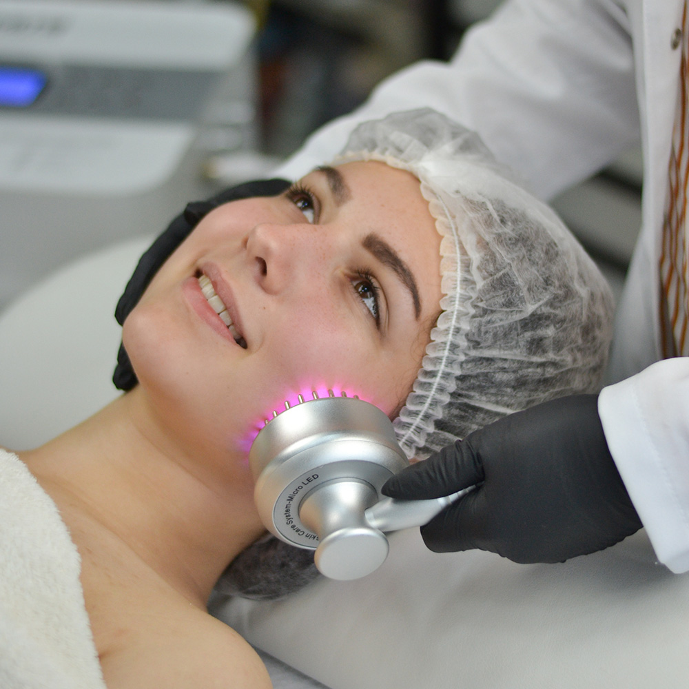 Terapia Mikroprądami LED Charakterystyki terapii mikroprądami LED: głowica stymuluje słabe impulsy elektryczne będące imitacją naturalnych procesów zachodzących w organizmie człowieka. Fale elektryczne poprawiają procesy produkcji kolagenu, elastyny i ATP, pobudzają drenaż limfatyczny, ujędrniają skórę, poprawiają krążenie krwi. Zalety Krioterapii: