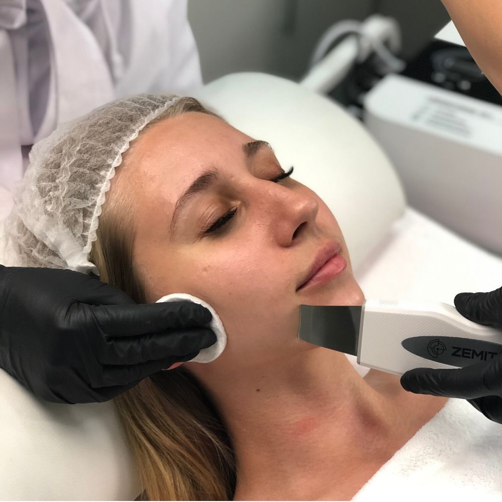 Mikrodermabrazja Diamentowa Mikrodermabrazja diamentowa polega na mechanicznym złuszczaniu powierzchownych warstw naskórka. Aparat pozwala w sposób kontrolowany i bezpieczny regulować głębokość ścierania warstwy po warstwie podczas zabiegu. Urządzenie usuwa naskórek dzięki specjalnym końcówkom (poddawanym sterylizacji) wyposażonym w pierścień ścierający zawierający przytwierdzone na stałe mikrokryształki. Mezoterapia Próżniowa Mezoterapia próżniowa to metoda kosmetologiczna wspomagająca metabolizm komórkowy i regenerację skóry drogą wprowadzenia witamin i substancji odżywczych wewnątrz komórek za pomocą fal ultradźwiękowych. Peeling Ultradźwiękowy To innowacyjna metoda oczyszczenia skóry. Bezbolesny łagodny peeling nie uszkadza skóry i oczyszcza ją z zanieczyszczeń i martwych komórek. Krioterapia Krioterapia to funkcja, która jest najczęściej używana jako zabieg końcowy w celu złagodzenia skóry po agresywnych peelingach i/lub dermabrazji, po mezoterapii igłowej czy zabiegach medycyny estetycznej. Głowica wpływa na skórę niskimi temperaturami, tym samym polepszając krążenie i zwężając ujścia gruczołów łojowych. Z wykorzystaniem głowicy można wykonać zimny lifting lub drenaż limfatyczny, który natychmiast zniweluje obrzęki.
